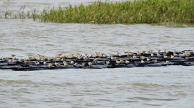 As development and rising seas diminish roosting sites, shell-filled bags provide “islands” to rest and refuel